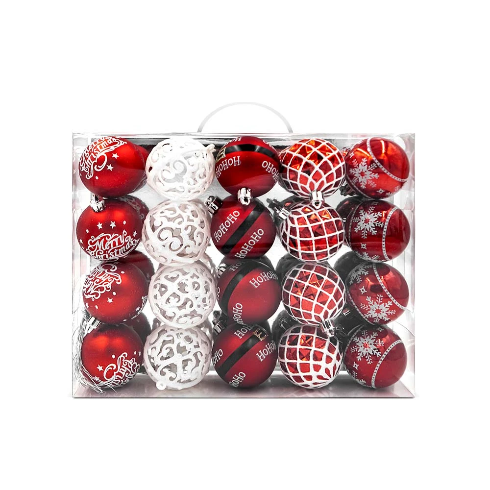 Decora il tuo Albero di Natale ed i tuoi ambienti grazie alle Palline Natalizie di aTe Casa. Questo set comprende 20 Sfere con decorazioni Natalizie di colore rosso e bianco, infrangibili, con diametro 60mm.