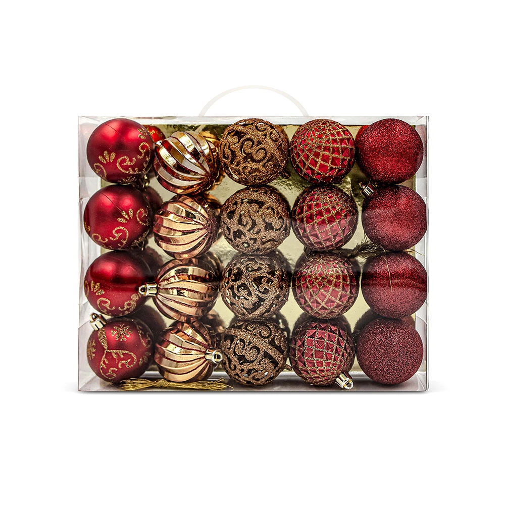 Decora il tuo Albero di Natale ed i tuoi ambienti grazie alle Palline Natalizie di aTe Casa. Questo set comprende 20 Sfere con decorazioni Natalizie di colore rosso e oro, infrangibili, con diametro 60mm.