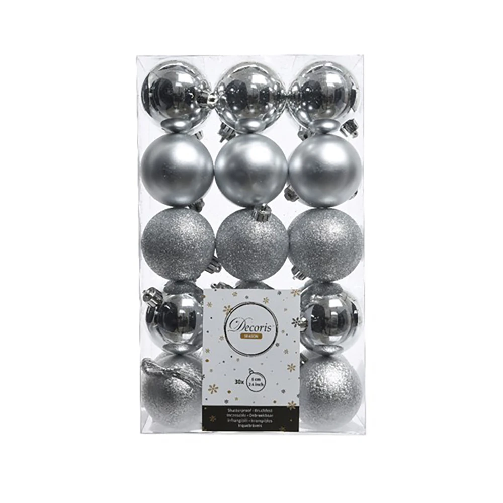 30 Palline Natalizie 60mm Infrangibili Argento.