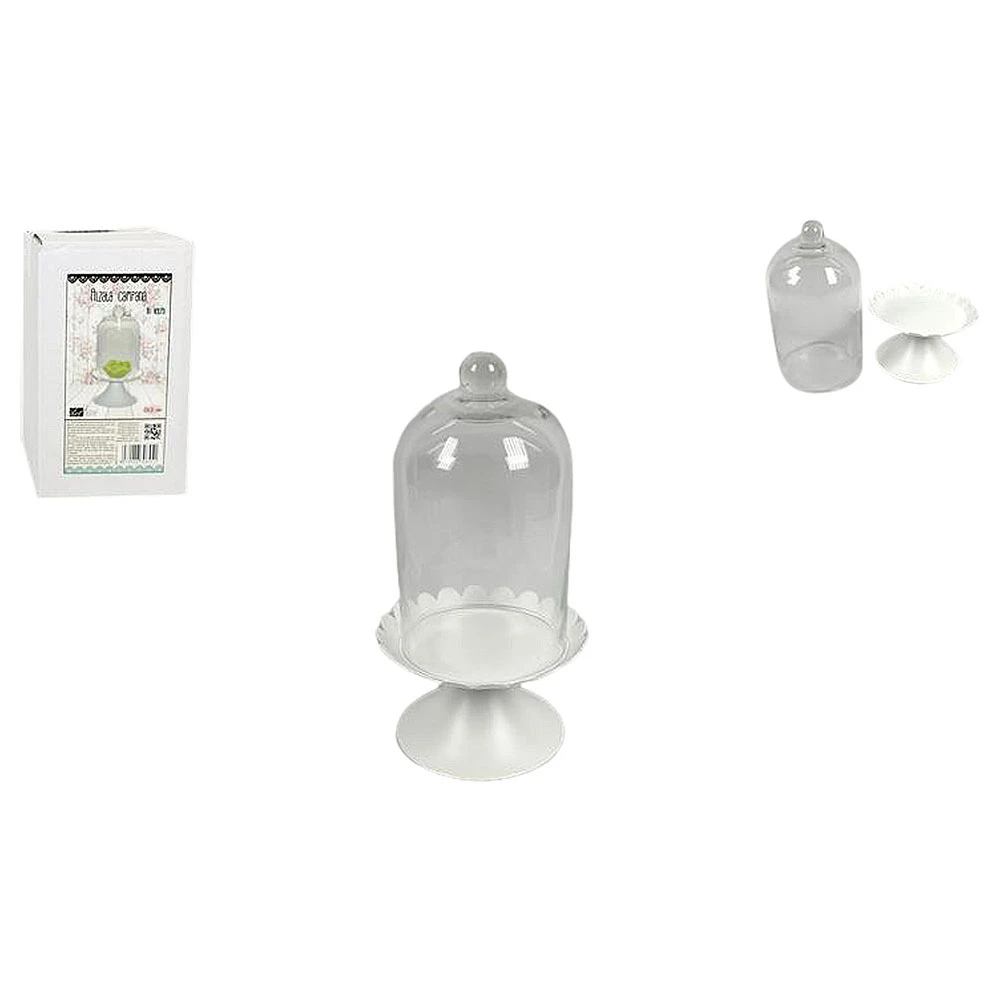 Alzata in Metallo con Campana di Vetro 22 cm, perfetta per decorare il tuo centro tavola in occasione delle festività natalizie.