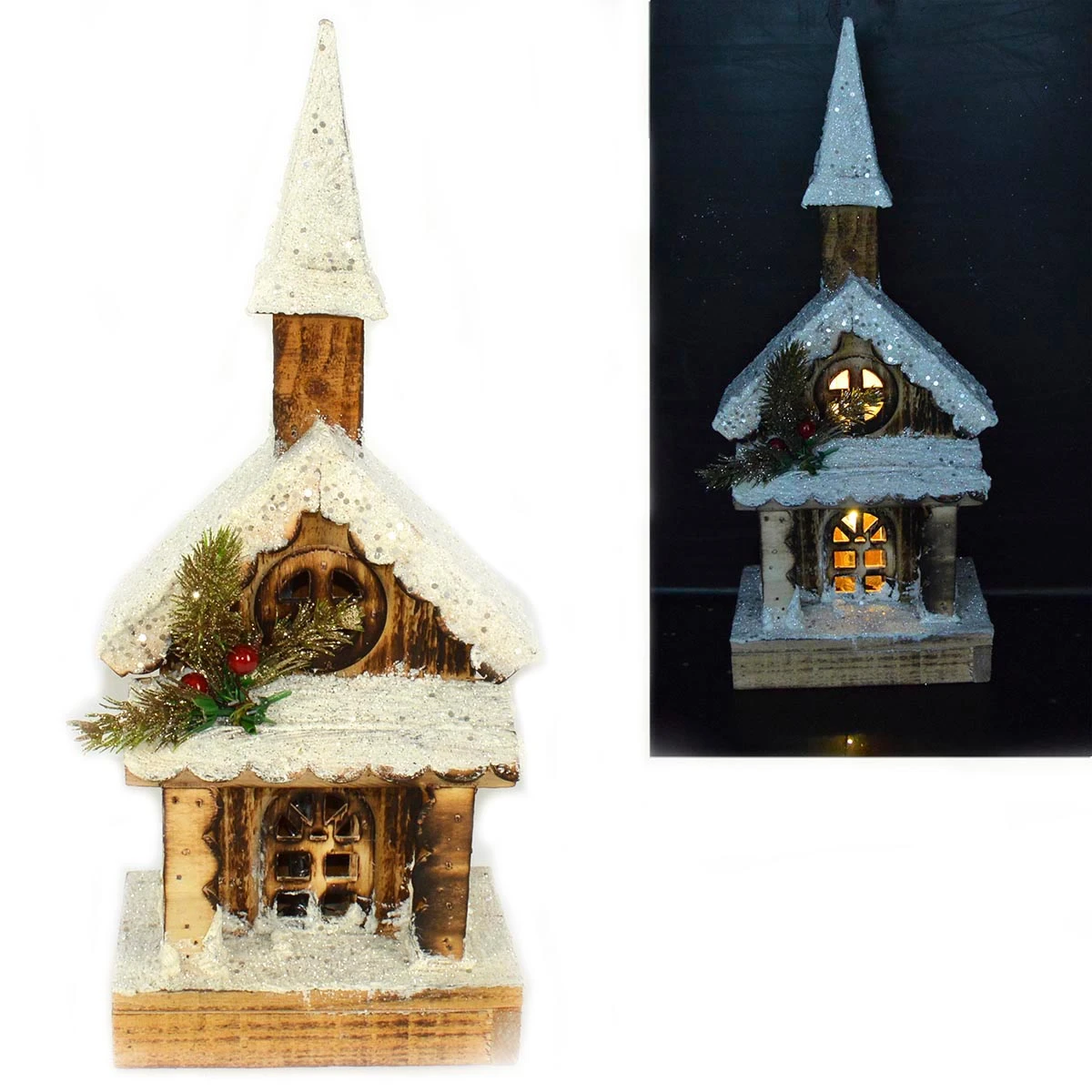 La Chiesetta Innevata con Luci, realizzata in Legno e provvista di rametti di pino decorativi, è la soluzione ideale per completare con un tocco di stile in più il tuo villaggio di Natale oppure per decorare con ancor più raffinatezza i tuoi ambienti durante il magico periodo delle festività natalizie.
