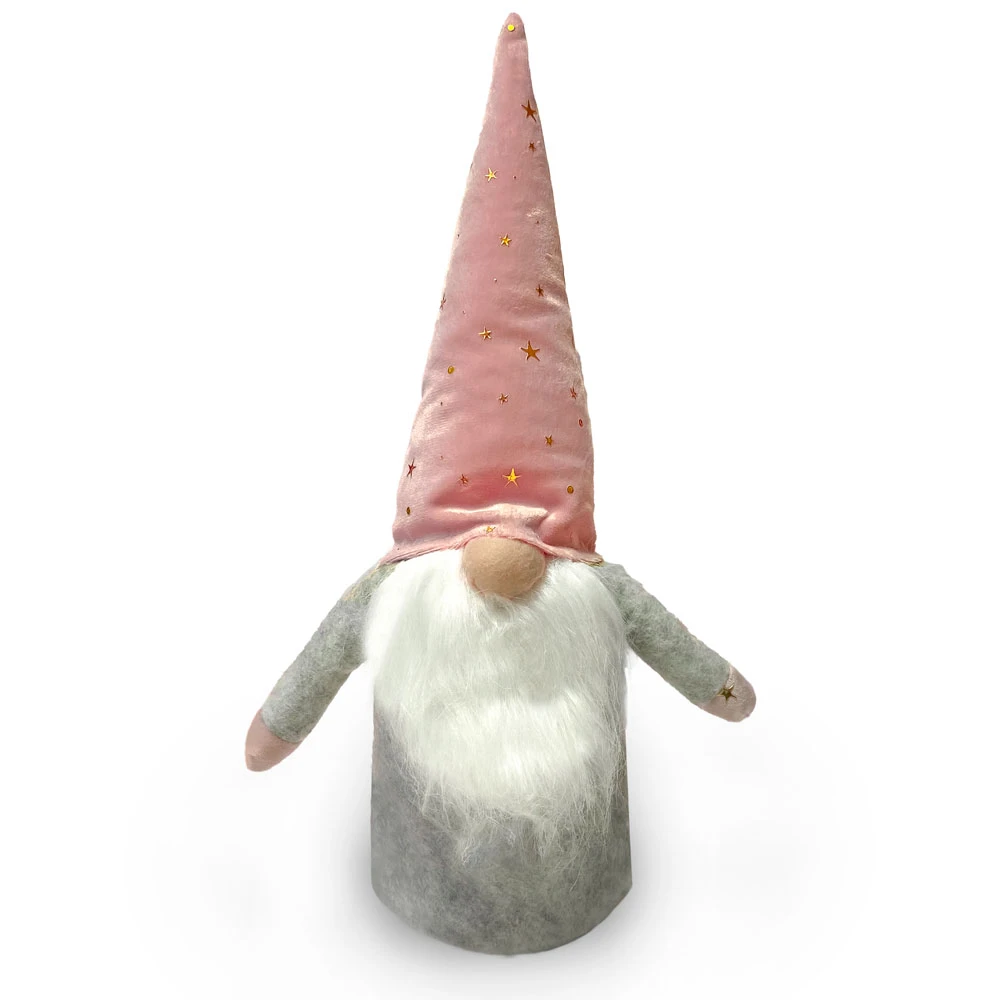Christmas Decoration Gnomo con Cappello Rosa a stelle di Christmas Decoration è un simpatico gnomo in tessuto con folta barba bianca e cappello rosa con tante stelle d’oro. Altezza: 37 cm.