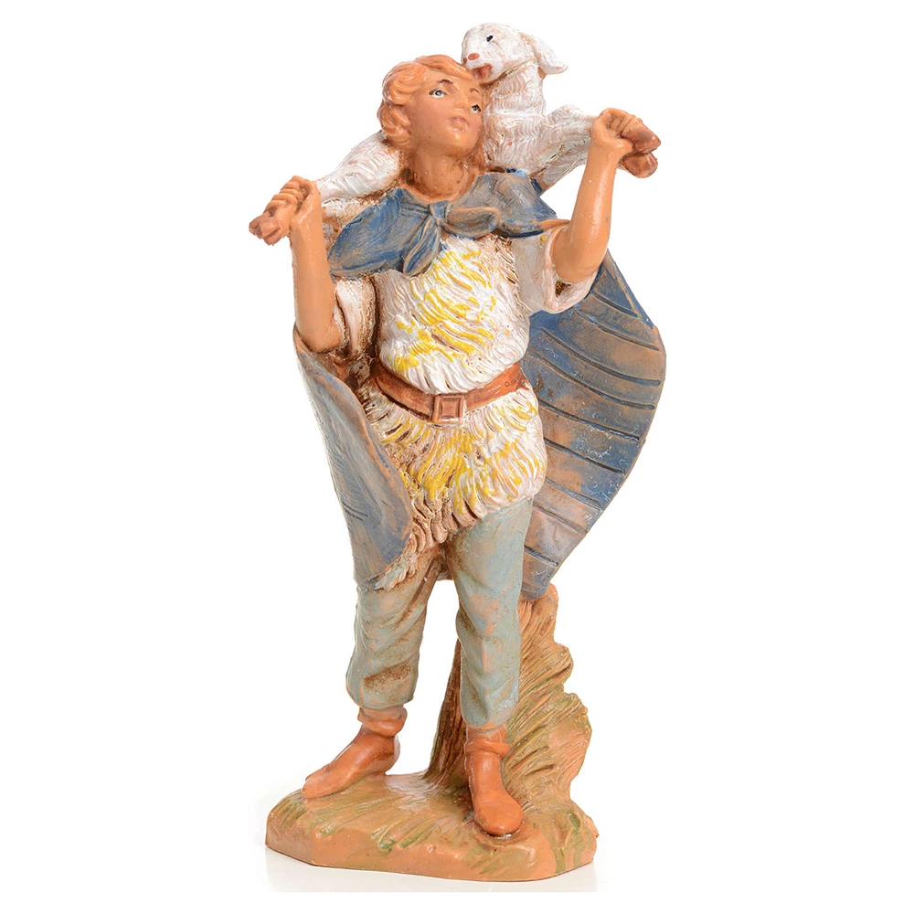 Statuina per Presepe 9,5 cm Pastore con Pecora sulle Spalle.