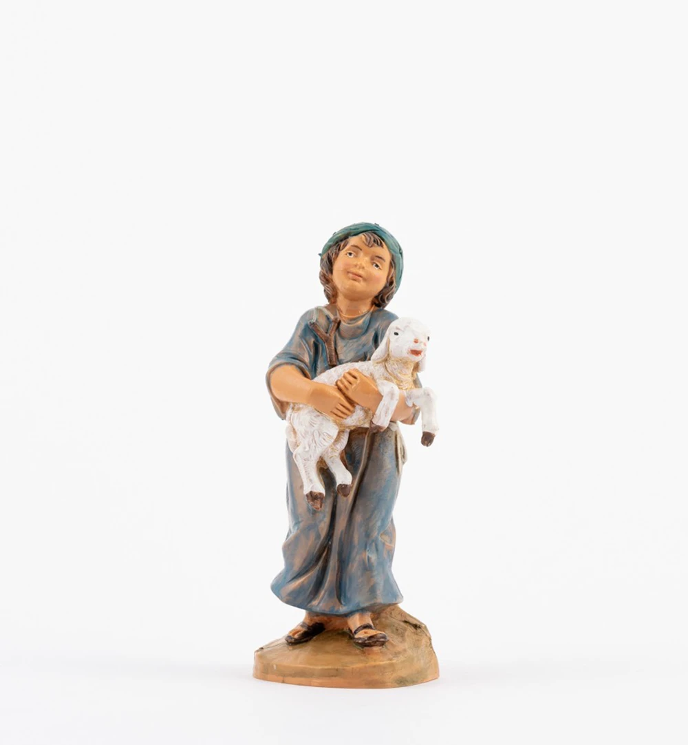Statuina per Presepe 12 cm Ragazzo con Agnello.