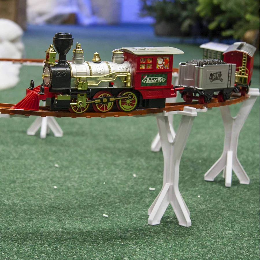 Treno Natalizio su Pista Sospesa. Classico trenino natalizio, composto da locomotiva e tre vagoni.