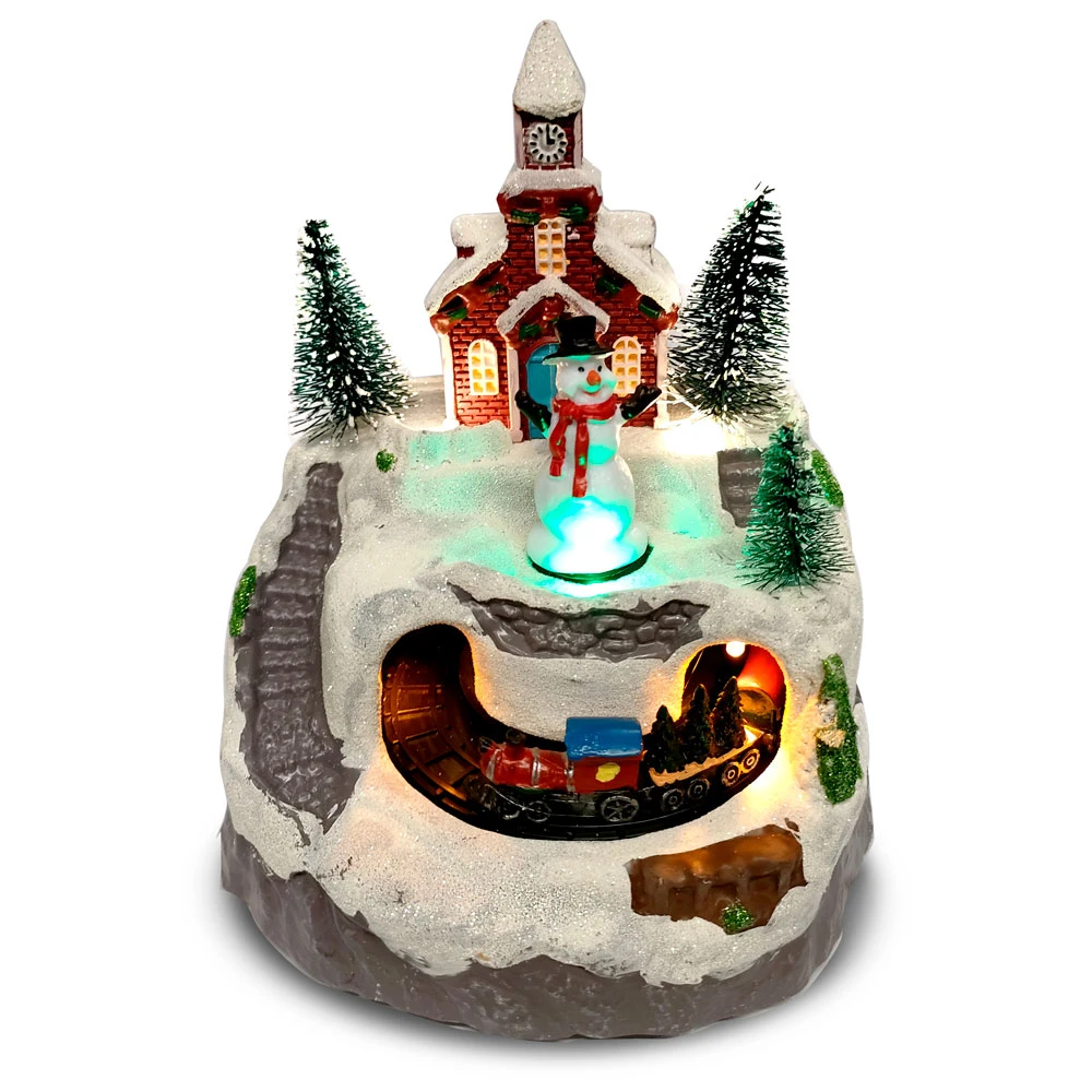 Scenario Natalizio Babbo Natale E Trenino Con Luci E Suoni