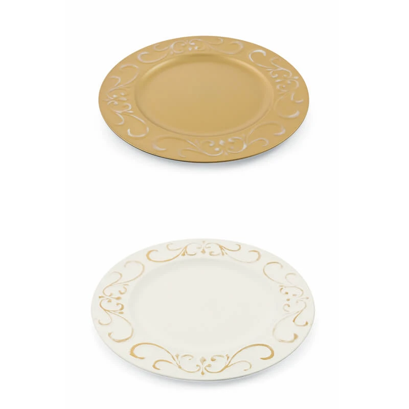 - Contenuto: 1 Sottopiatto in 2 varianti di colore: Oro con decoro Bianco e Bianco con decoro Oro