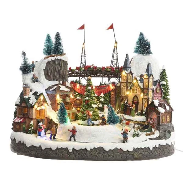 Villaggio Natalizio Stazione Con Treno Luci A LED Musica E Movimenti 26 Cm